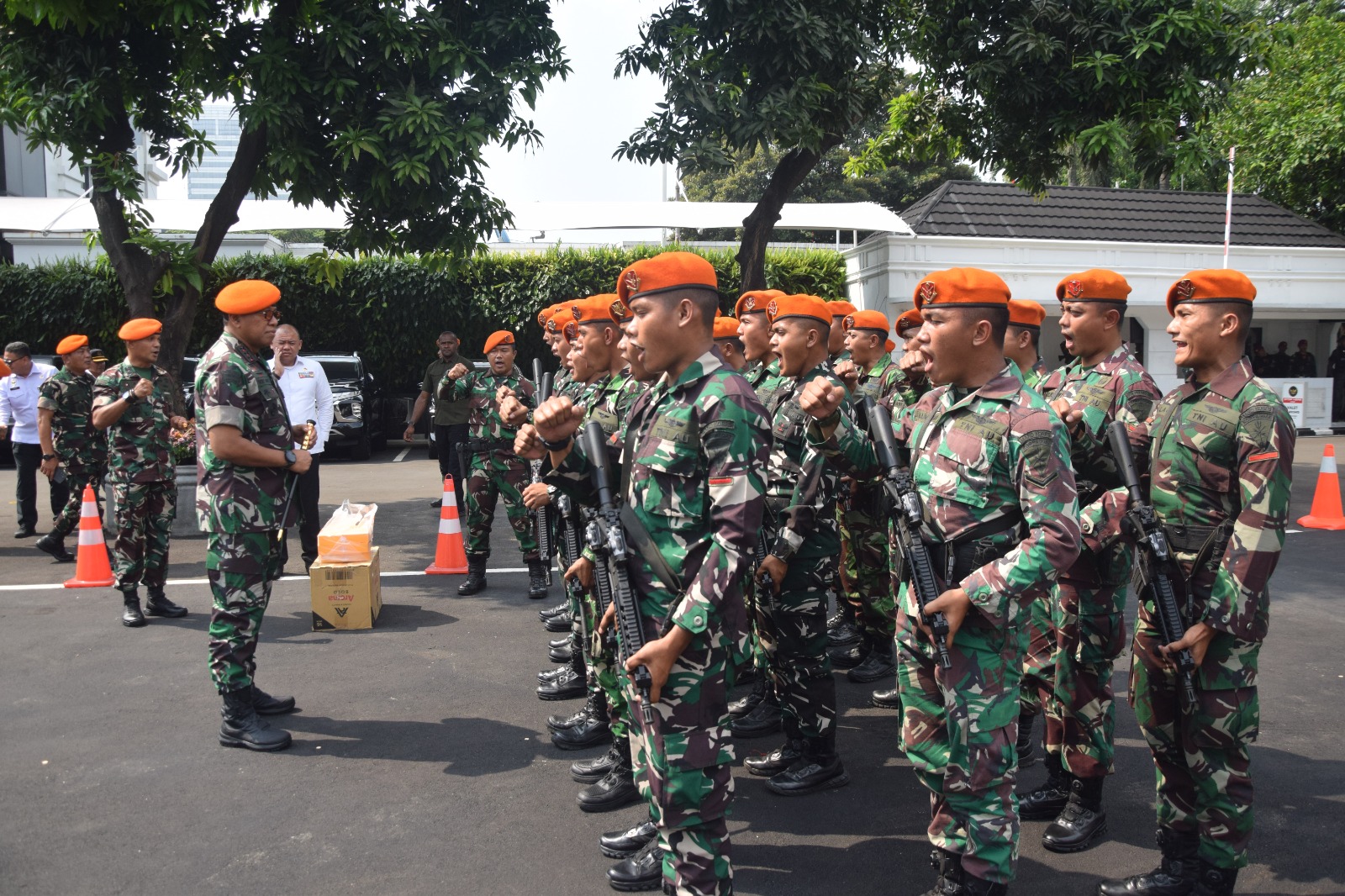 Selain memberikan motivasi secara langsung, Panglima Korpasgat juga menyerahkan bantuan logistik agar kesejahteraan dan kondisi fisik prajurit tetap terjaga selama menjalankan tugas.
