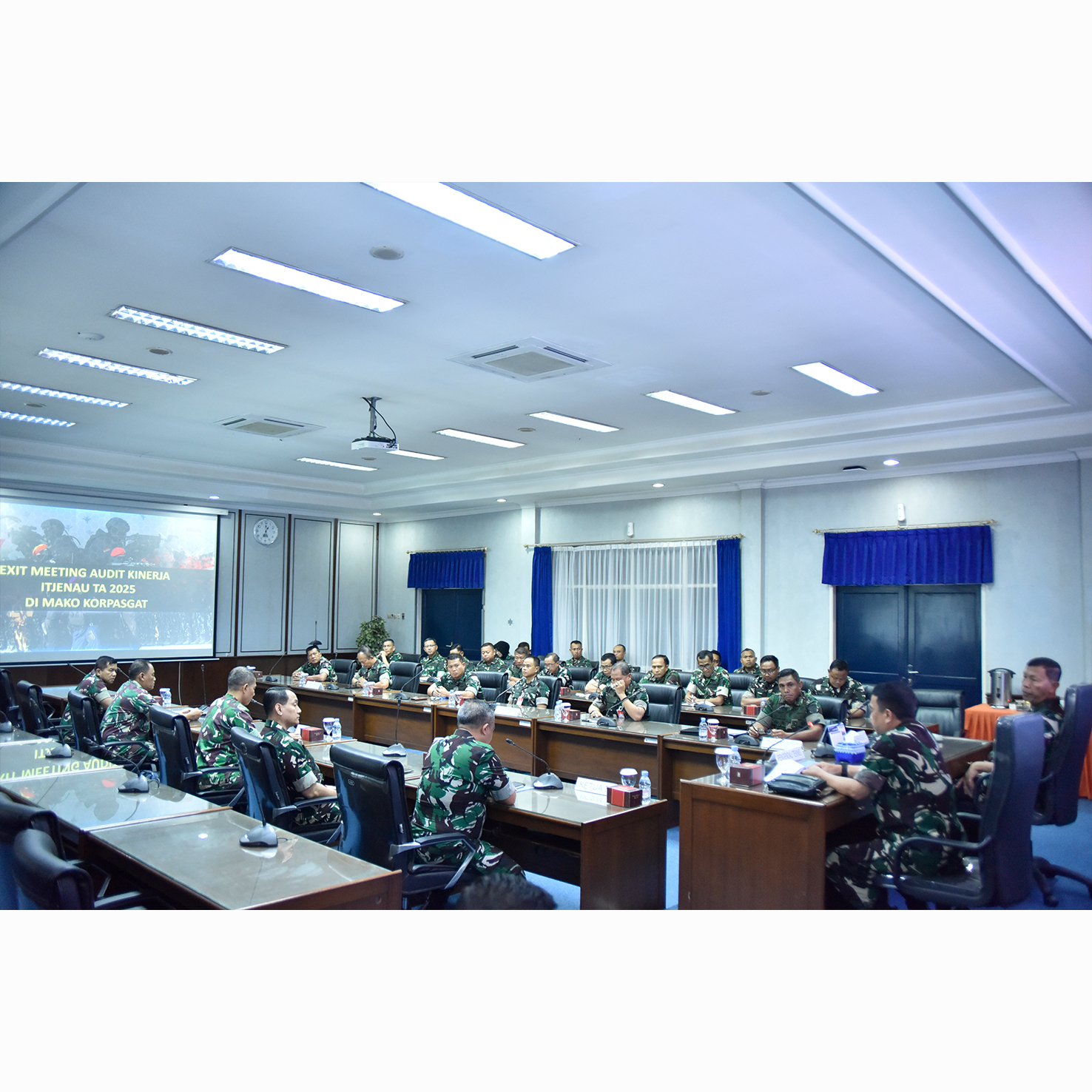 BANDUNG — MAKO KORPASGAT. Tim Audit Kinerja Itjenau telah menyelesaikan rangkaian kegiatan audit kinerja di Markas Komando Korps Pasukan Gerak Cepat (Mako Korpasgat), yang ditutup dengan pelaksanaan Exit Meeting di Ruang Rapat Nanggala Yudha, Margahayu, Bandung, Kamis (4/9/2025).