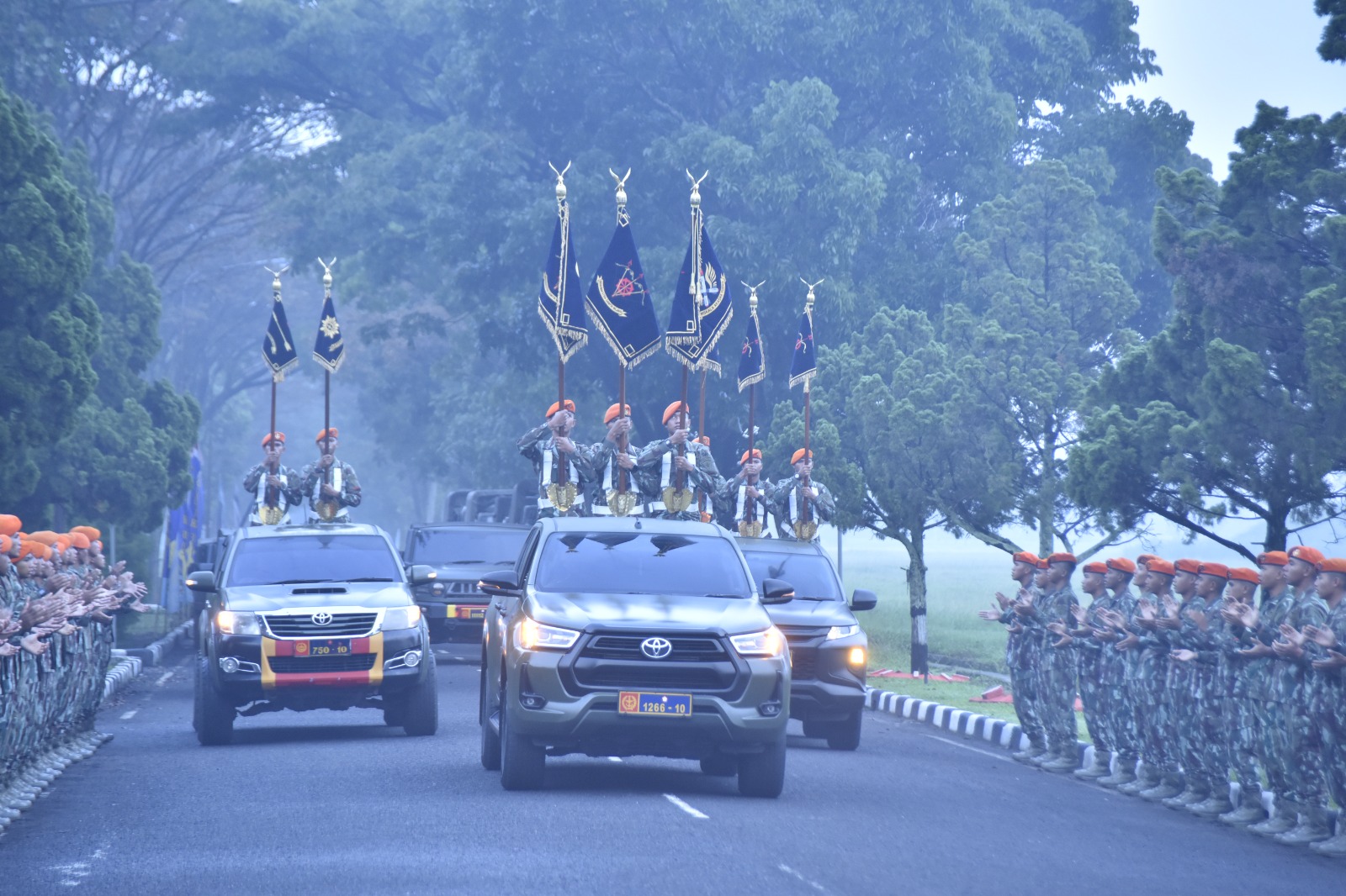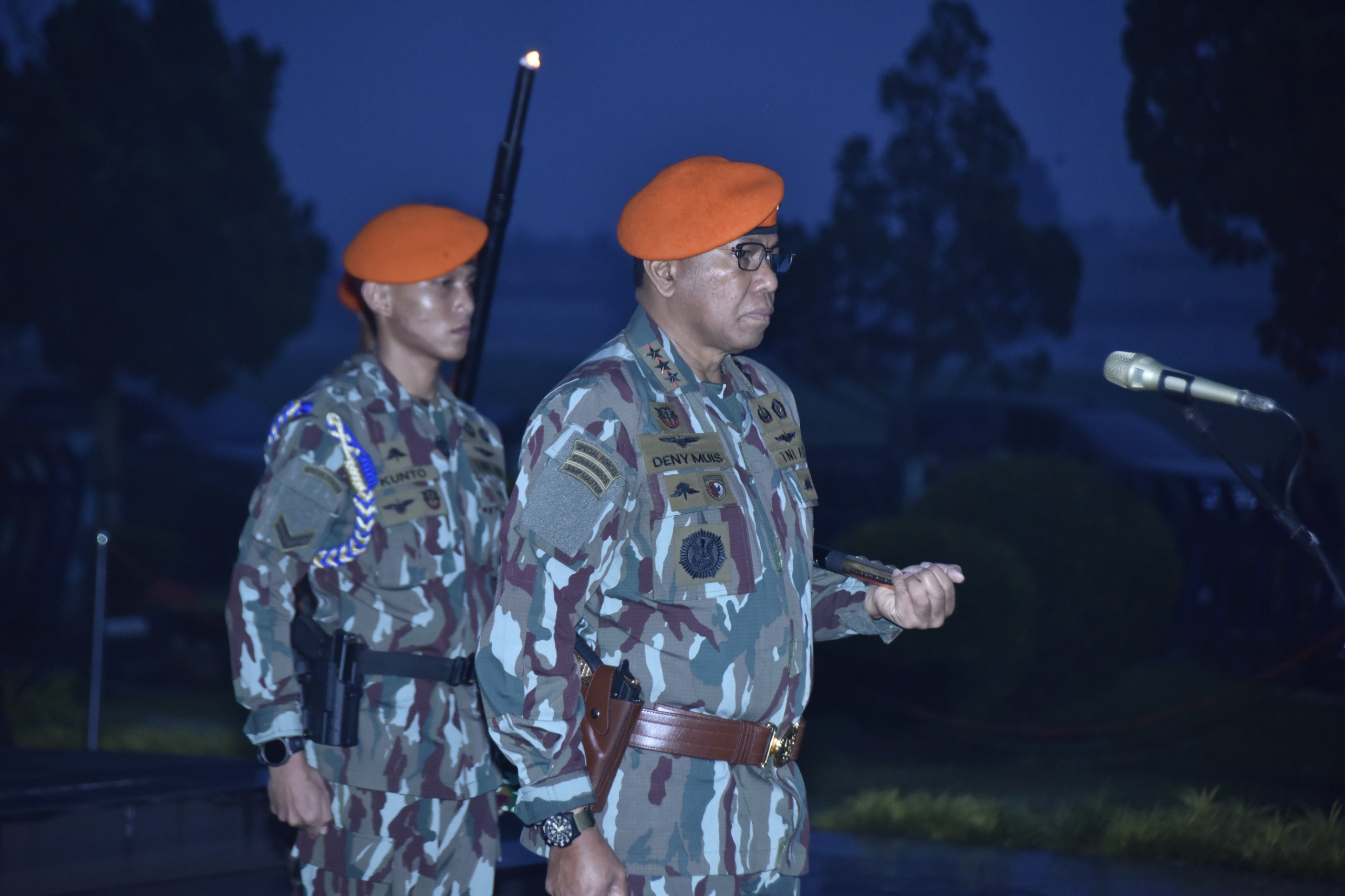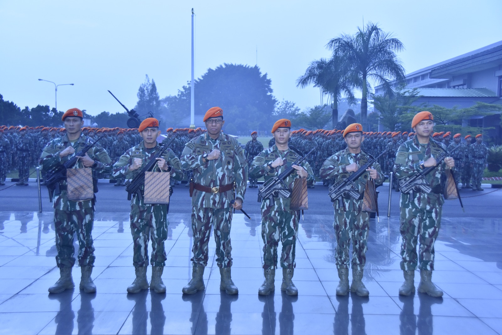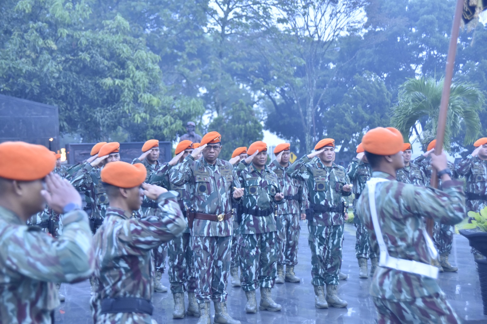 “Ketika mentari menembus kabut pagi dan embun perlahan sirna, semangat kalian harus kian menyala. Jadikan setiap tetes embun di tanah sebagai lambang tekad yang tak tergoyahkan. Semangat para pahlawan di tempat ini adalah api abadi yang harus terus dijaga di dada setiap prajurit korpasgat”. Tegas Panglima Korpasgat.