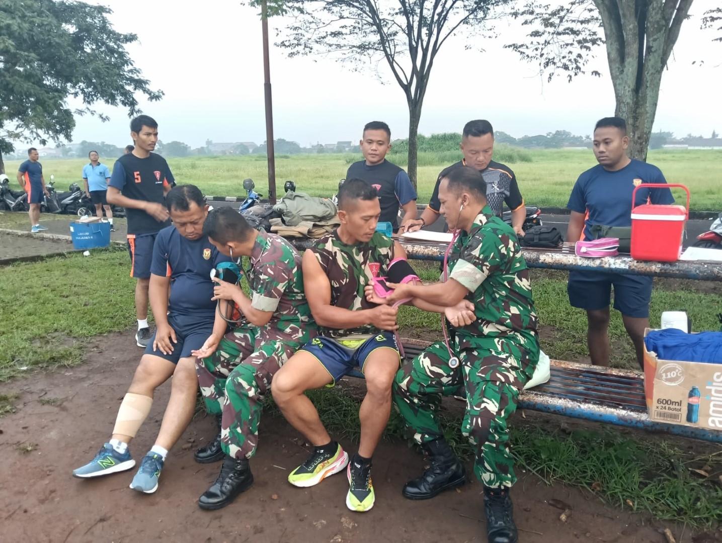 Sebelum tes kesamaptaan dimulai, para personel terlebih dahulu melaksanakan cek tensi serta peregangan yang dipimpin oleh staf Binjas Mako Korpasgat yang diikuti oleh Perwira, Bintara dan Tamtama.