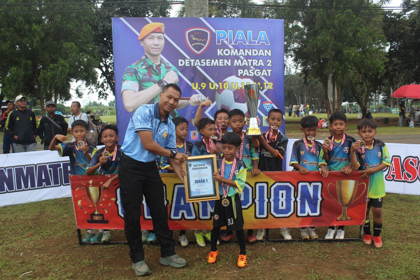 Pada Turnamen Sepakbola Tahun ini Peringkat Pertama U-9 dan U-11 diborong oleh Klub Sepakbola Mandiri dari Kota Pasuruan, Untuk Peringkat Pertama U-10 di raih oleh Klub Sepakbola KARLOS dari Karangploso, Kota Malang dan untuk U-12, Peringkat Pertama diraih oleh Klub Sepakbola SATRIA MUDA, Kota Malang. Pada Turnamen kali ini Masyarakat dan Peserta Turnamen sangat antusias dan terhibur. Mereka sangat senang bisa datang ke Kantor Detasemen Matra 2 Pasgat dan Harapan Besar mereka, Semoga tahun depan Turnamen seperti ini dapat terlaksana kembali.