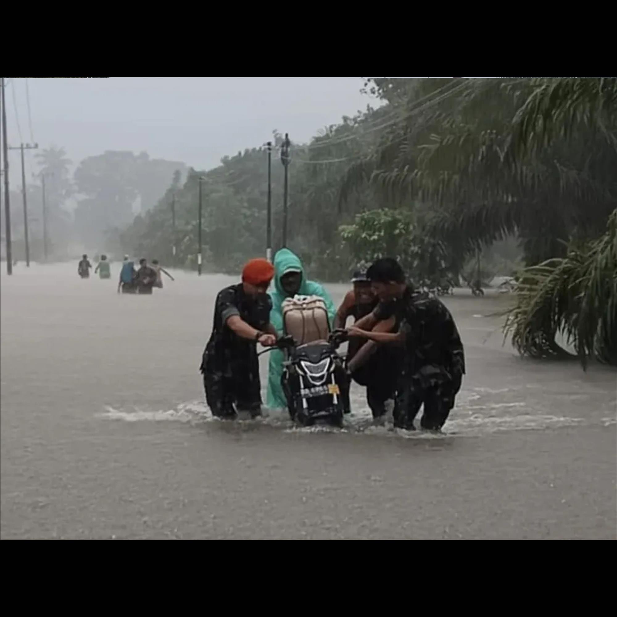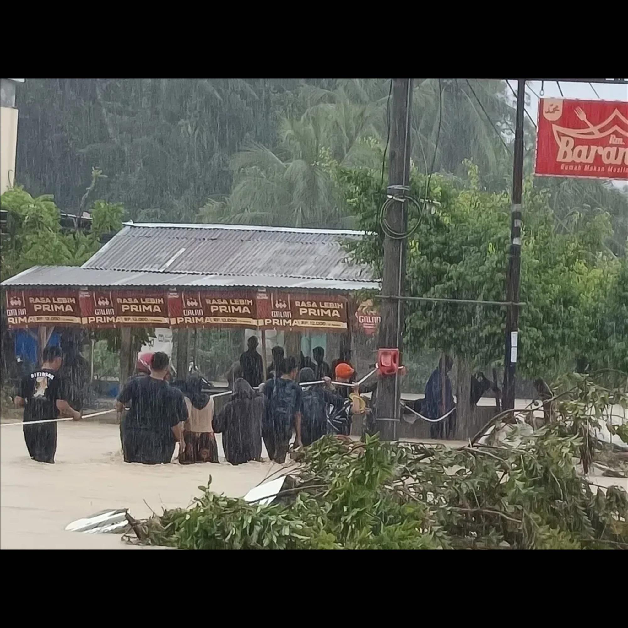 Banjir terjadi setelah hujan dengan intensitas tinggi menyebabkan Sungai Aek Kolang meluap dan merendam permukiman warga. Begitu menerima laporan debit air yang terus meningkat, prajurit Batalyon 469 Korpasgat langsung menuju lokasi untuk membantu masyarakat yang mulai terisolasi.