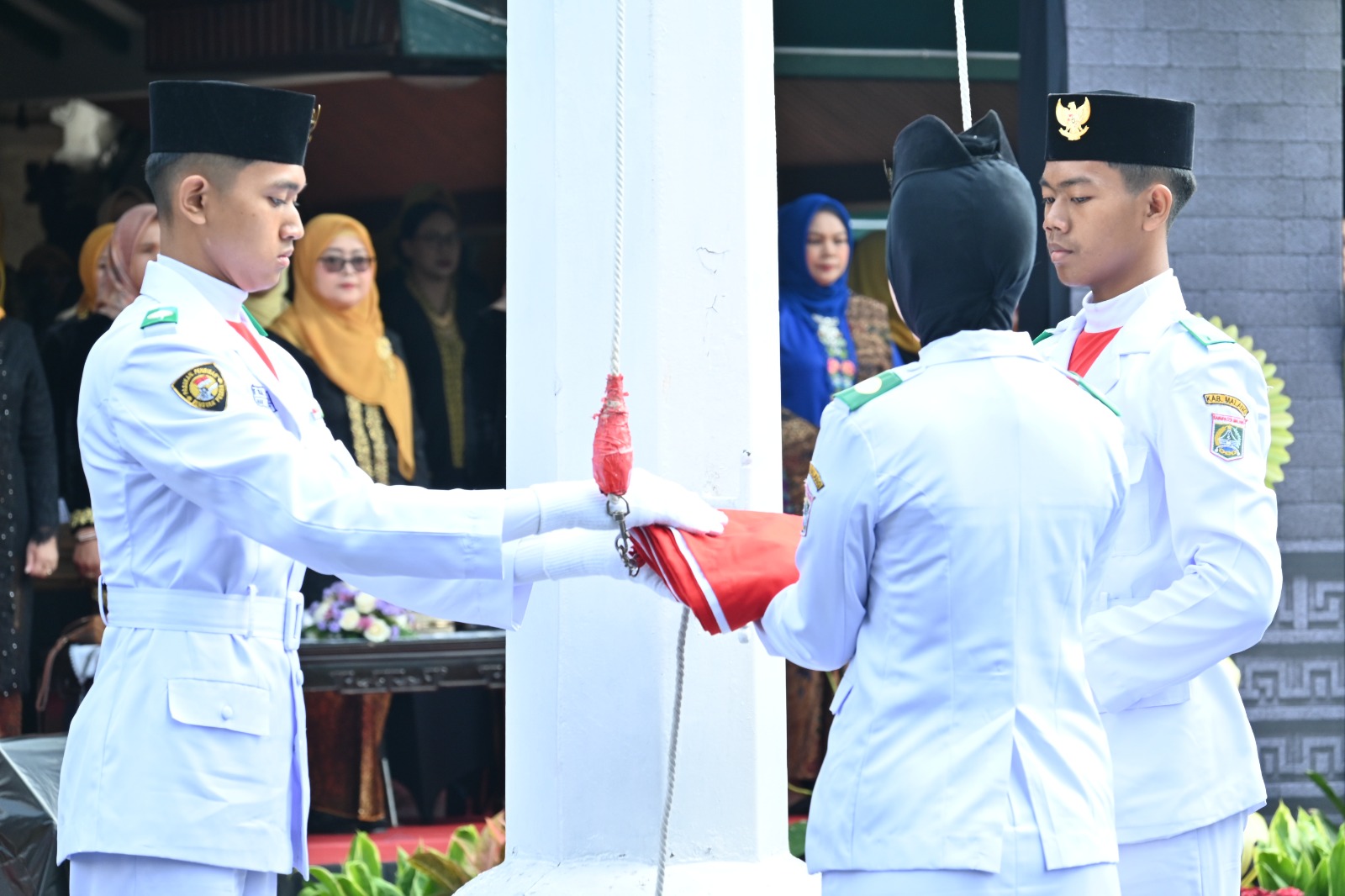 Komandan Detasemen Matra 2 Pasgat Letkol Pas Irrie Setianto, menghadiri upacara peringatan Hari Jadi ke – 1265 Kabupaten Malang Tahun 2025 di Halaman Pendopo Agung Kabupaten Malang, Jumat ( 28/11/2025 ).