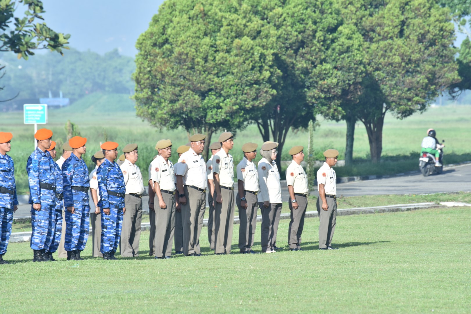 Rangkaian upacara meliputi pengibaran Bendera Merah Putih, pembacaan teks Pancasila, Pembukaan UUD 1945, Sapta Marga, serta Pembacaan Panca Prasetya Korpri. Seluruh kegiatan berlangsung dengan khidmat, tertib, dan penuh rasa tanggung jawab.
