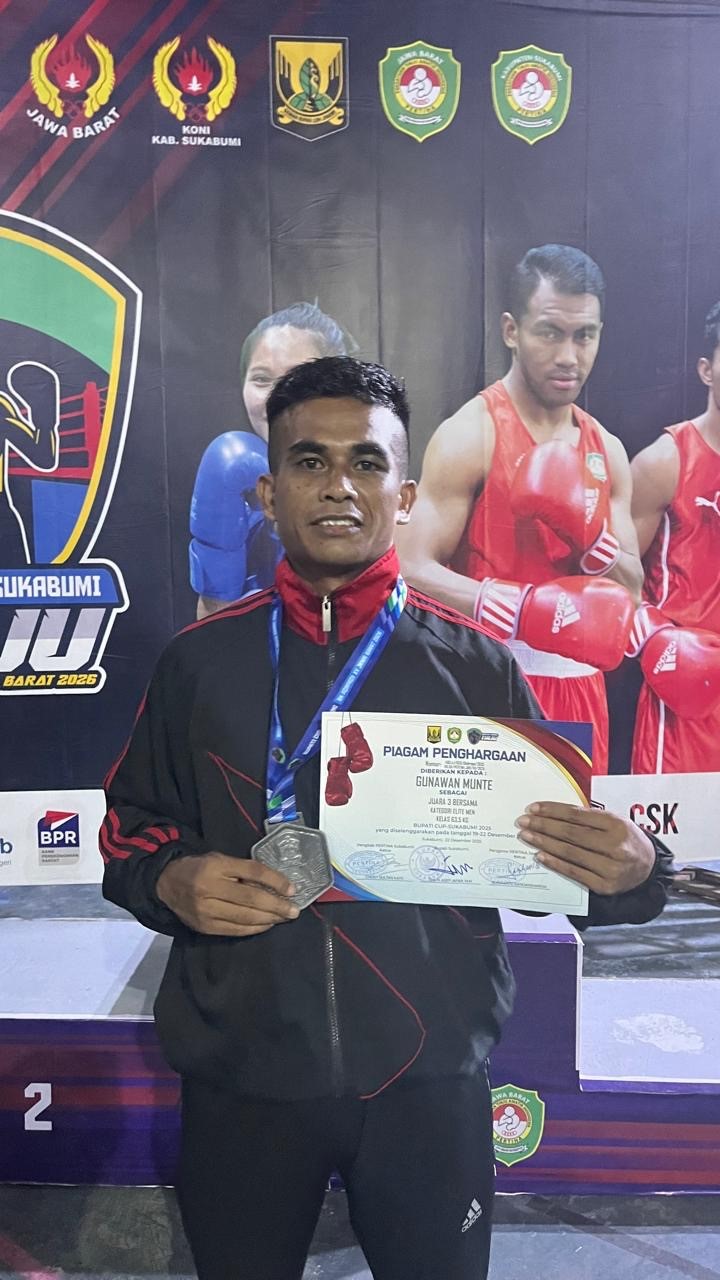 JAKARTA — Prajurit Detasemen Matra 1 Pasgat kembali menorehkan prestasi di bidang olahraga. Dalam ajang Kejuaraan Tinju Bupati Sukabumi Cup VIII Tahun 2025 sekaligus Babak Kualifikasi Pekan Olahraga Provinsi (Porprov) Jawa Barat 2026, yang digelar di GOR Pelabuhanratu, Kabupaten Sukabumi, Senin (22/12/2025).