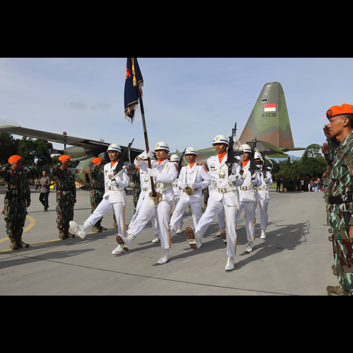 MALANG — Brigade Parako 2 Pasgat melaksanakan prosesi bersejarah pemindahan Dhuhaja, panji kehormatan satuan, dari markas lama di Makassar, Sulawesi Selatan, menuju markas baru di Kota Malang, Jawa Timur, Jumat (26/12/2025).