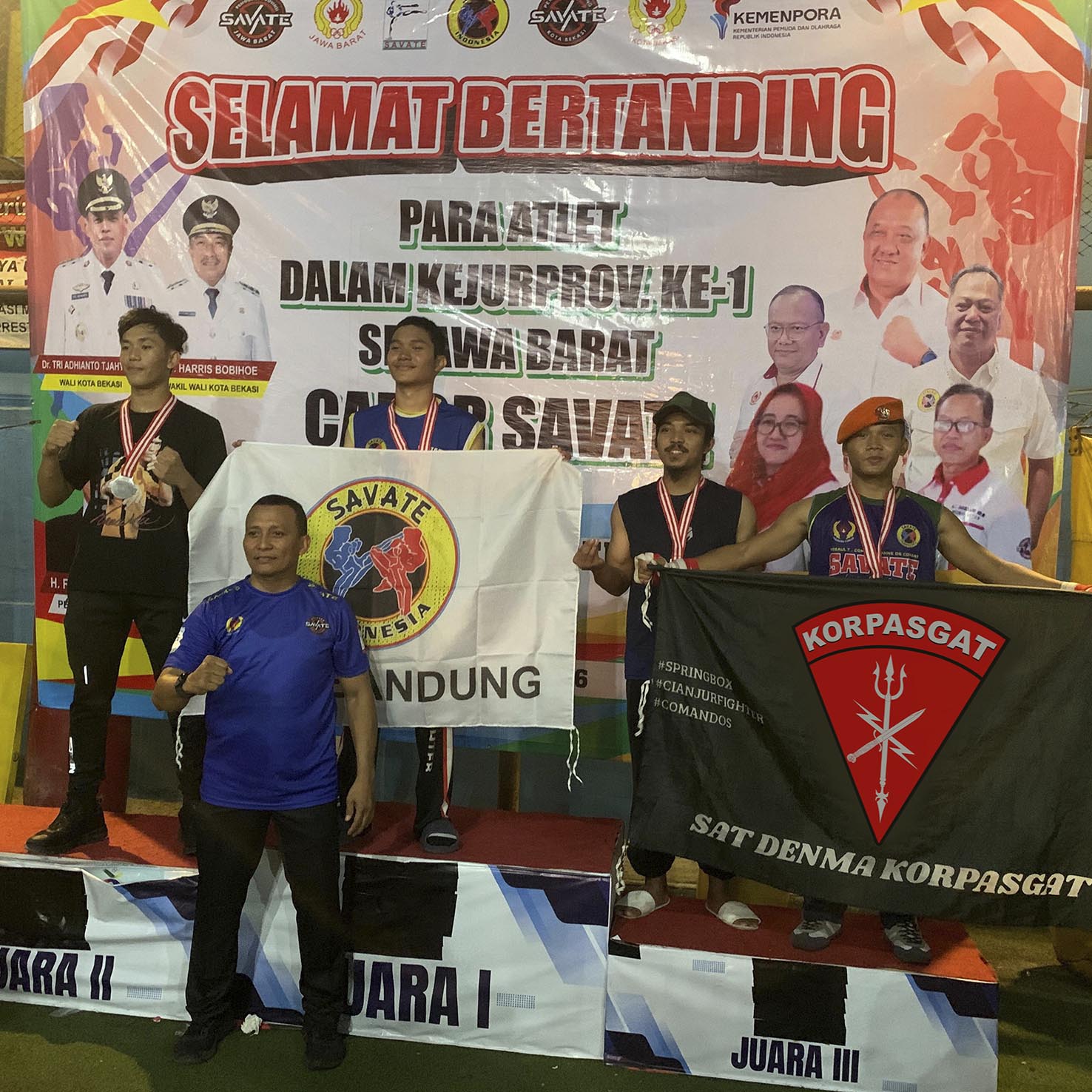 BEKASI-MAKO KORPASGAT. Atlet binaan Korpasgat berhasil mencatatkan prestasi pada Kejuaraan Provinsi Cabang Olahraga Beladiri Savate yang diselenggarakan di Gedung Beladiri Camp Dragon, Bekasi, Minggu (25/01/2026).