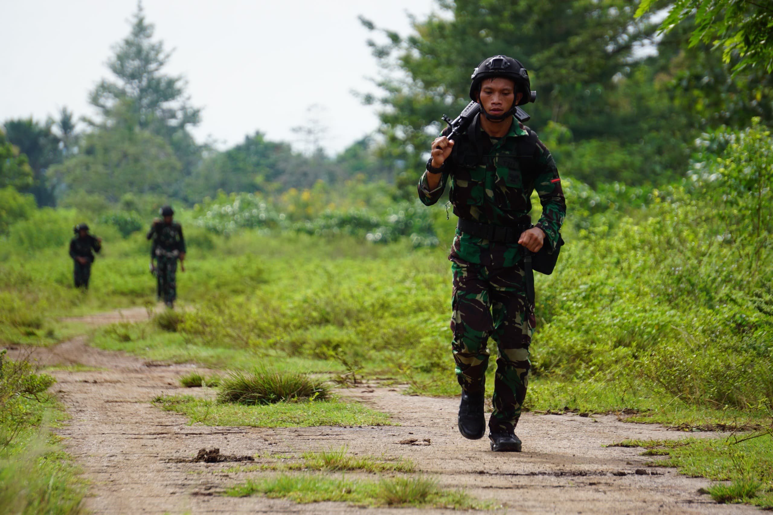 Latihan Lintas Medan merupakan salah satu materi pembinaan ketahanan fisik yang wajib diikuti oleh setiap prajurit. Dalam pelaksanaannya, prajurit menempuh jarak tertentu dengan berlari sambil membawa beban perlengkapan dan senjata, sehingga menuntut kondisi fisik yang prima.