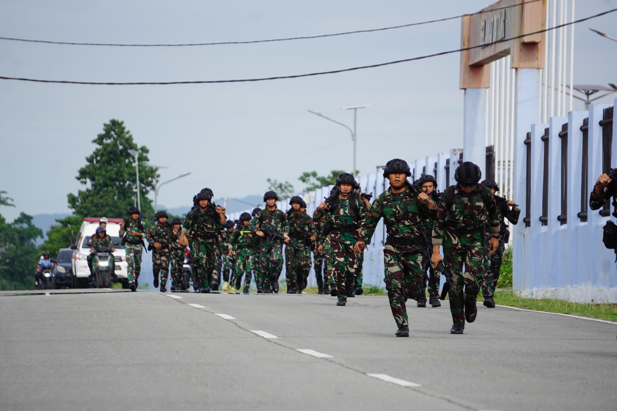 Jayapura – Yon Parako 481 Pasgat. Komandan Batalyon Para Komando 481 Pasgat, Letkol Pas Mansyur Mannyaurang, bersama seluruh prajurit melaksanakan Latihan Lintas Medan di area Lanud Silas Papare, Jumat (06/02/2026).
