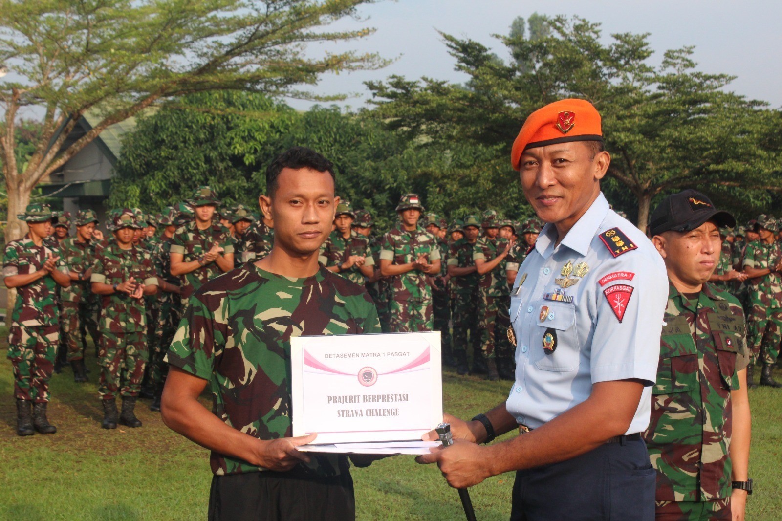 Komandan Detasemen Matra 1 Pasgat menyampaikan apresiasi dan rasa bangga kepada seluruh prajurit, serta menegaskan agar terus meningkatkan dedikasi, inovasi, dan semangat berprestasi demi menjaga nama baik satuan.