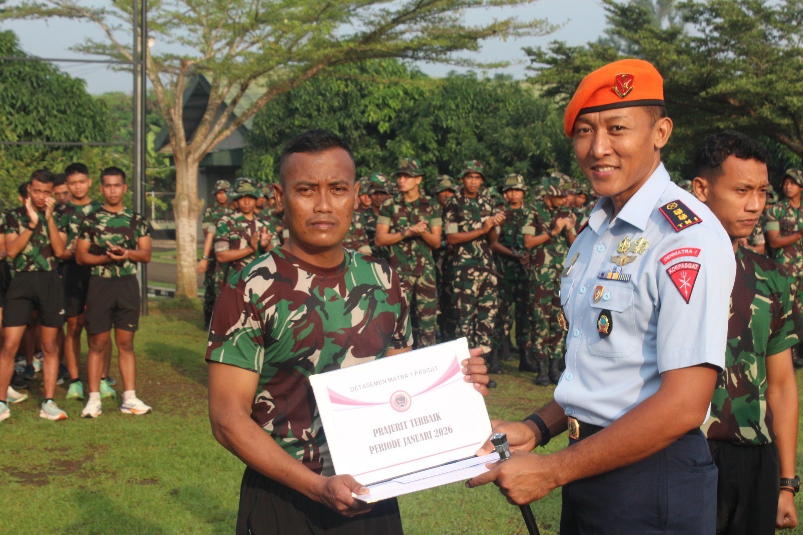 Jakarta — Detasemen Matra 1 Pasgat. Dalam rangka memacu semangat pengabdian, dedikasi, dan prestasi prajurit, Komandan Detasemen Matra 1 Pasgat Letkol Pas Fajrun Shodiq memberikan penghargaan kepada prajurit terbaik dan prajurit berprestasi di Lapangan Apel Markas Detasemen Matra 1 Pasgat, Rabu (11/2/2026).
