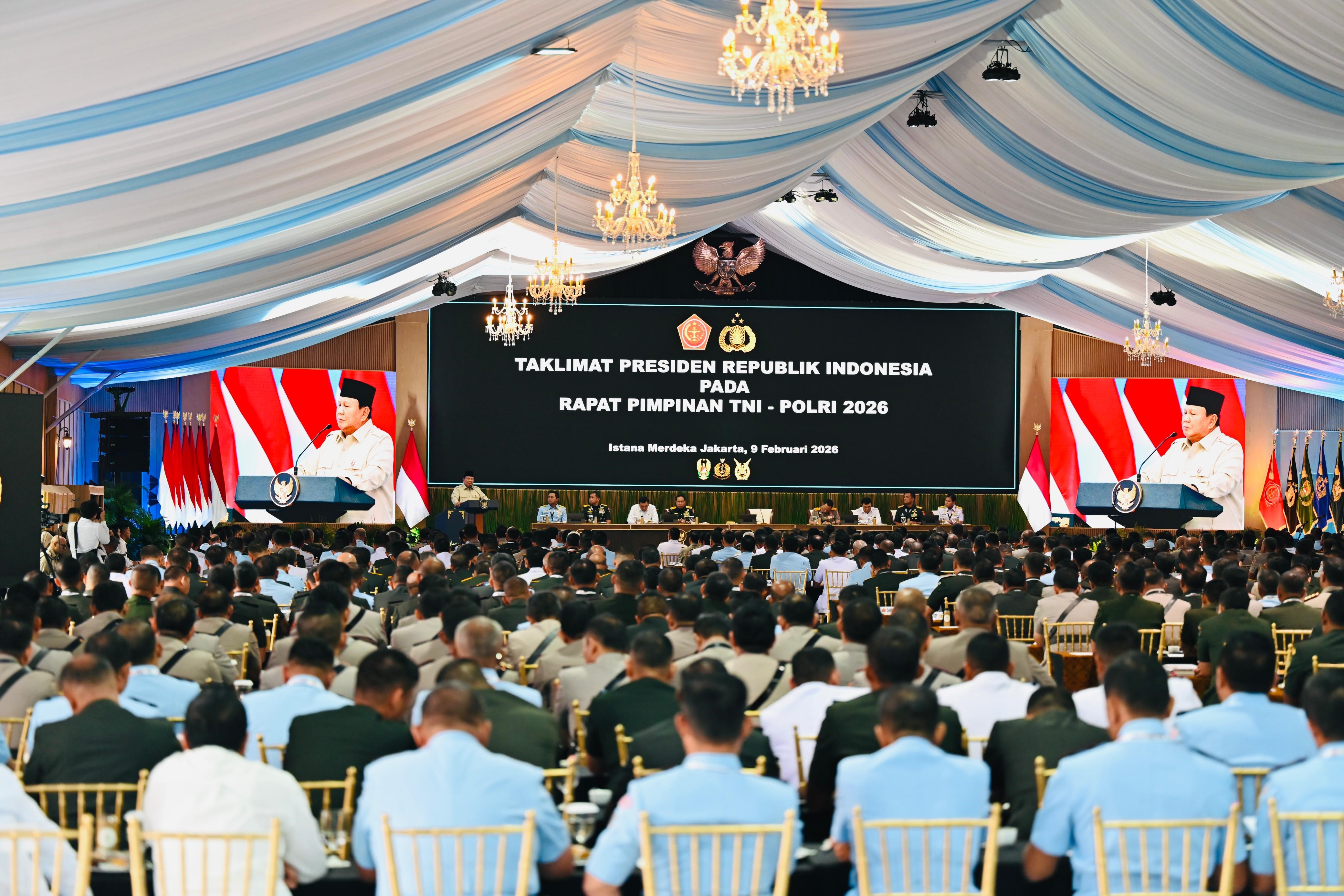 Jakarta — Panglima Korpasgat Marsekal Madya TNI Deny Muis, S.E., M.M., menghadiri Rapat Pimpinan (Rapim) TNI–Polri yang dipimpin langsung oleh Presiden Republik Indonesia, Prabowo Subianto, di Istana Negara, Senin (9/2/2026).