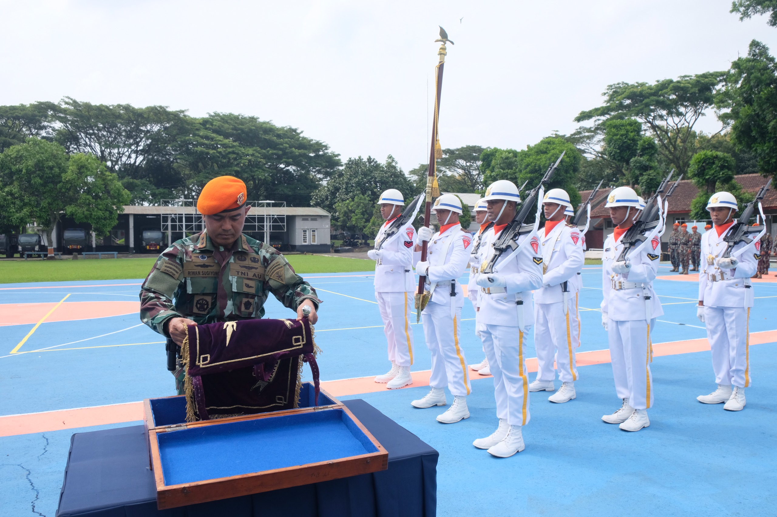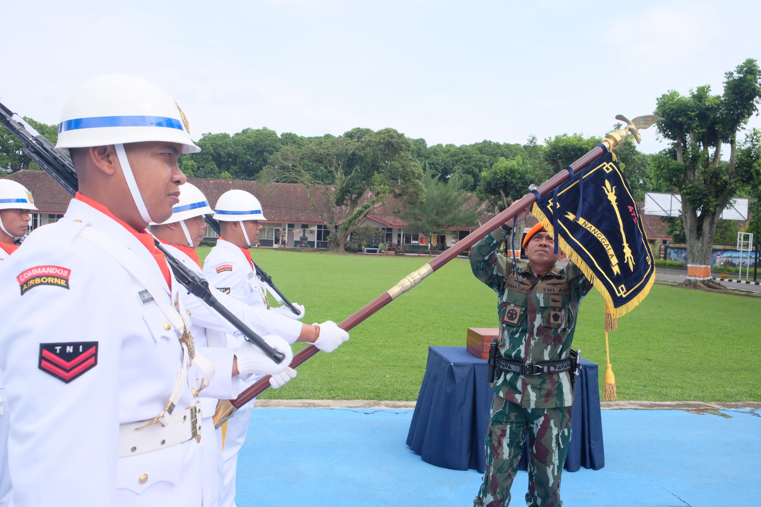 Prosesi yang berlangsung khidmat ini menandai perubahan identitas resmi dari Batalyon Komando 464 Korpasgat “Nanggala” menjadi Batalyon Para Komando 472 Pasgat “Nanggala” bagian dari transformasi organisasi dan penguatan jati diri satuan.