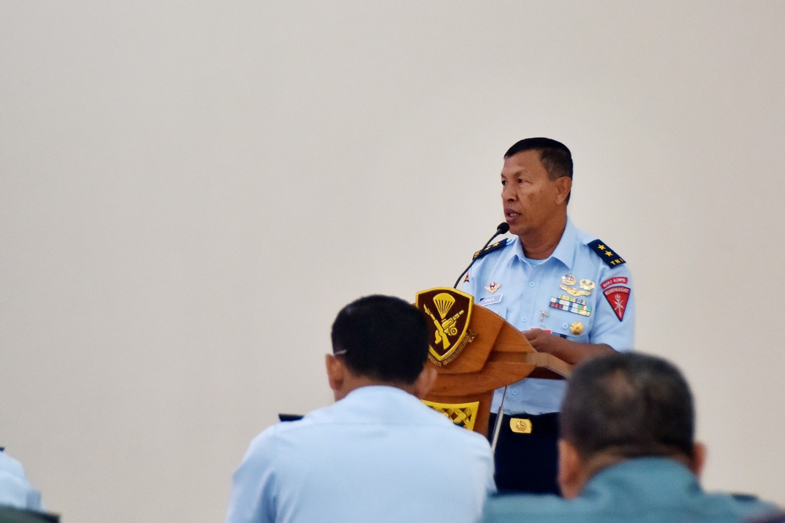 Membacakan sambutan Panglima Korpasgat, Kas Korpasgat menyampaikan, “Saya selaku Panglima Korpasgat dan atas nama satuan TNI wilayah Jawa Barat mengucapkan terima kasih atas hasil audit yang telah disampaikan. Semoga rekomendasi yang diberikan dapat dijadikan sebagai bahan masukan dan barometer untuk meningkatkan kinerja satuan yang lebih baik, sesuai dengan ketentuan dan kriteria yang berlaku.”