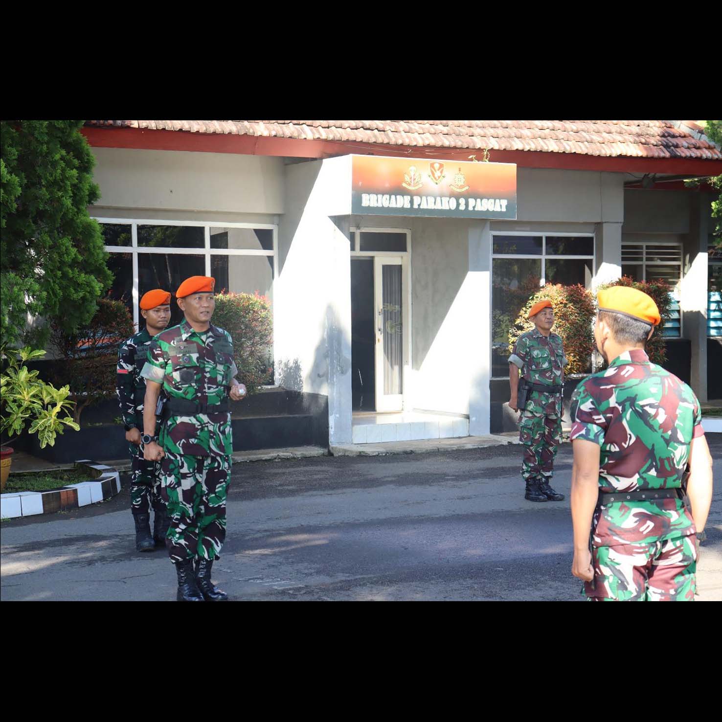 MALANG-BRIGADE PARAKO 2 PASGAT. Komandan Brigade Parako 2 Pasgat, Kolonel Pas Abdul Fajar, M.Han., memimpin langsung apel gelar kesiapan pengamanan Hari Raya Idul Fitri di lapangan apel Batalyon Parako 472 Pasgat, Senin, (16/03/2026).