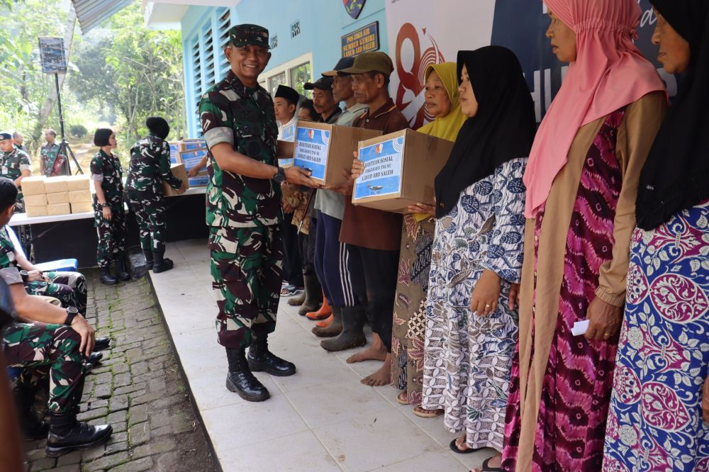 Dalam kegiatan tersebut juga dilaksanakan penyerahan bantuan sosial secara simbolis berupa paket sembako dan kitab suci Al-Qur’an kepada masyarakat sekitar sebagai bentuk kepedulian dan pengabdian TNI AU kepada rakyat.