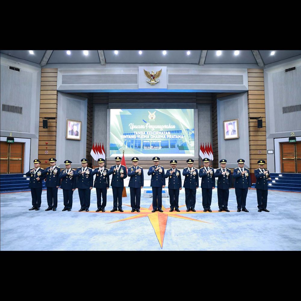 Jakarta–Mako Korpasgat. Kepala Staf Angkatan Udara Marsekal TNI M. Tonny Harjono, S.E., M.M., menyematkan Tanda Kehormatan Bintang Yudha Dharma Pratama kepada Panglima Korpasgat Marsekal Madya TNI Deny Muis, S.E., M.M., bersama 11 Perwira Tinggi TNI Angkatan Udara yang berlangsung di Auditorium IG Dewanto, Mabesau, Cilangkap, Jakarta Timur. Selasa, (14/04/2026).