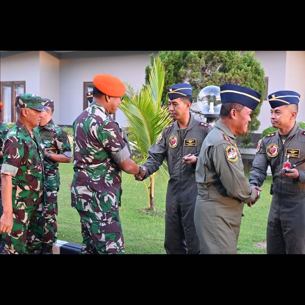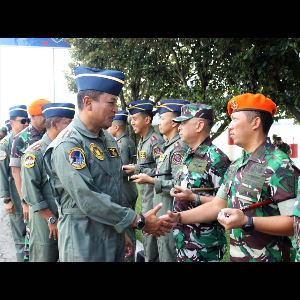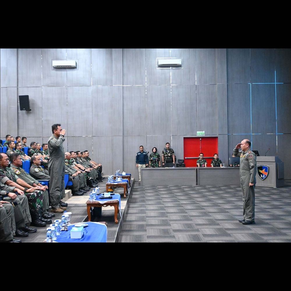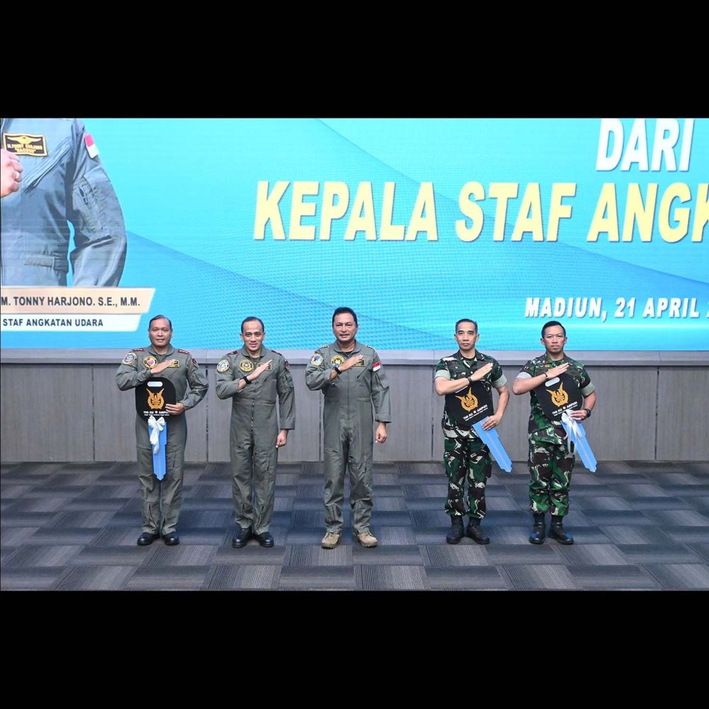 Madiun-Mako Korpasgat. Panglima Korpasgat Marsdya TNI Deny Muis, S.E., M.M., mendampingi Kepala Staf Angkatan Udara (Kasau) Marsekal TNI M. Tonny Harjono, S.E., M.M., dalam rangka kunjungan kerja di Lanud Iswahjudi, Madiun. Selasa (21/4/2026).