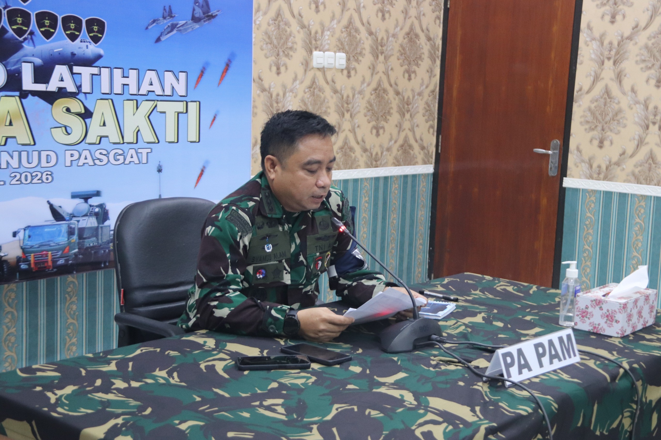 MAKASSAR – Divisi Arhanud Pasgat. Komandan Divisi Arhanud Pasgat Marsma TNI Ari Ismanto secara resmi membuka Latihan Niskala Sakti Tahun Anggaran 2026 melalui video conference yang diikuti oleh seluruh satuan jajaran Divisi Arhanud Pasgat, Senin (27/4/2026).